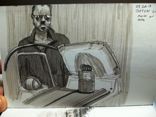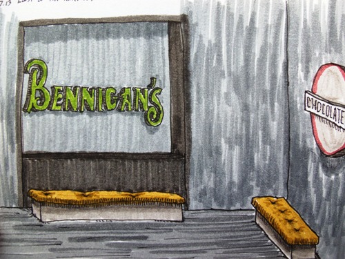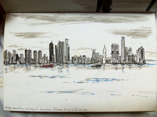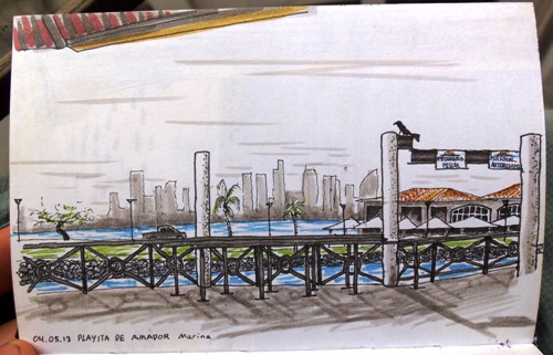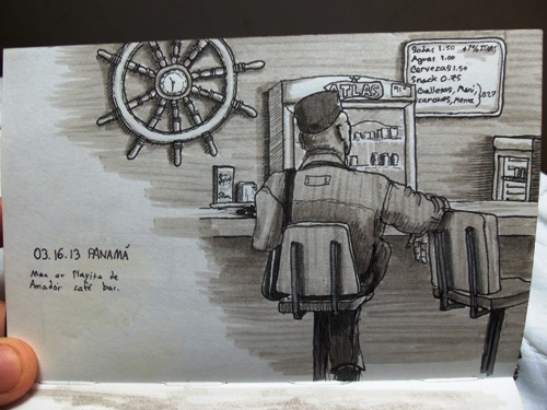 Before leaving the Americas, I decided to have one last American meal. Here’s a travel drawing of the Bennigan’s on Panama City’s causeway.