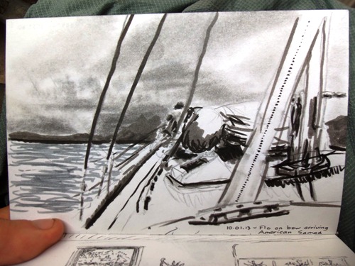 “I’ve learned all I care to learn on boats, my friend. I’m wholly fucking disillusioned with the cruising lifestyle. Big yachts piloted by a bunch of people who mingle only among themselves around the world; they take their things with them everywhere; they go to desolate islands to get away from the world and the islands are boring after a few days; they bring their pleasure boats into port and expect ‘traditional cultures’ and primitive sights to dazzle their eyes and some get all indignant when they see a people like the Polynesians in American Samoa who have lost traditional custom but who are climbing the financial ladder, the same fucking financial globalized ladder that the yachties had to climb for them to even have the yacht in the first place! Fuck!”
