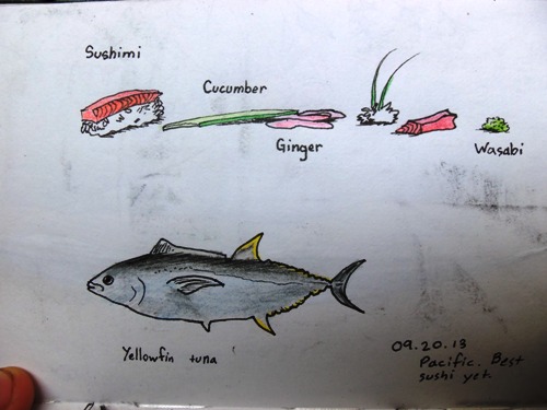 A few days later I left and went to my cousin’s house in Santa Monica, and I felt that I’d come full circle, having stayed with him rumbo Mexico in 2009. Everything was coming together, the whole cycle of the travel. I had not made it to Asia; instead, I had begun a return trip that was closing the doors of doubt one at a time; that was yanking off the shoe and pouring the pebbles back into the sea. My cousin treated me as a prince welcomes a prince, and we ate sushi and I spoke of sashimi on the high seas, and of Andrew and his nakedness jinxing the world. I watched movies, finally, and had time to write, and relax, on a couch, that looked like fluffy feather incarnate. We spoke of his life and mine, two vastly different possibilities in the same world; the start-up entrepreneur and the student-rendered-vagabond with stories to fill a mug.