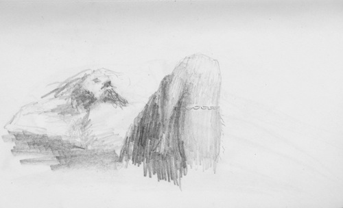 I drank coffee with the old man, who spoke about a great many things. I watched him, observing him closely, like a bastard who knows someone is blind will. The wrinkles on his face were shallow and light; highlights, as it were, to mark a man of age. The skin under his chin and around the back of his neck was rolled and grouped together in clumps, and his cheeks hung low. His ears were large but not yet oversized like the ears of so many elder men.