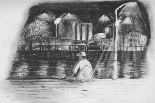 Here, Hippy stood and walked to the guardrail lining the walk above the river. As he passed a group of young girls he said, “good evening,” and the girl nearest to him jumped and gathered herself closer to her companions. That brief moment upset me. I knew the hippy was dirtier than most, but in the eyes of the girl he was more than that; he was squalid, and people who are so dirty, who use clothes that look dirty–but which are in fact simply well-used–are to be feared, because they’re street people, and the street, if we listen to the egomaniacs, is the most horrible place to be, and if you give the street people your attention, you are lost to their lunacy. I thought, too, after the hippy had returned from shitting off into the water, that this was someone who knew better than the cleanest around.