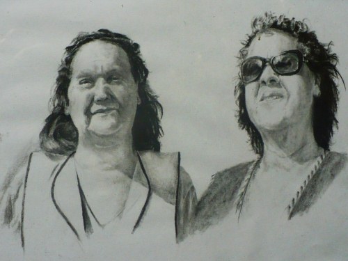 When the evening came I sat to a meal of fried salmon and beer with Gloria and Teresa. Alejandro and his girl had left, and Felipe was asleep. I took the opportunity to present the sisters with my gift. It wasn’t wrapped. I had bought a frame at the supermarket, and in it I placed what I’d been working on all day; a drawing of them.