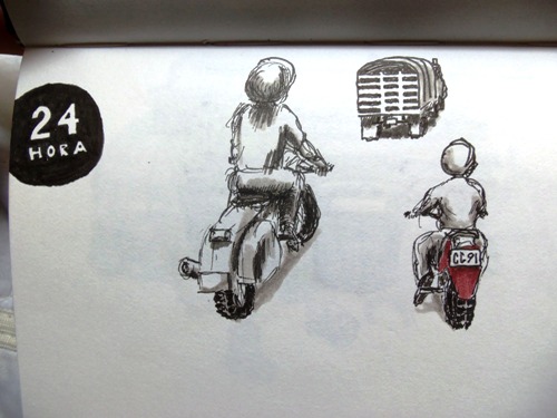 A travel sketch of motorcycles in Medellin, trying to improve with Pitt Pens.