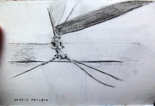 So now, left alone in slow adriftness, I watched for an age as this faster boat slowly, painfully slowly, moved to overtake us. I imagined then what it must have been like for a sailor, or merchant marine, in the days of ships of the line and cannon battles. I imagined the sail on the horizon was an enemy, coming to fight us. I imagined what it would be like to see this sail, and, more specifically, to know that it was a far superior ship in both speed and armament, and that its intention was surely to sink us. What a curious torture to be able to calculate your doom to within an one or two, or however long it takes for that ship to finally get in cannon range, light the fuses and batter our brittle defense to smithereens.