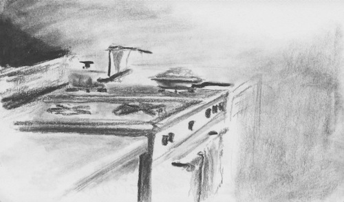 This is a drawing of the kitchen in the house where I stayed in Caracas, Venezuela. They were Chavistas, revolutionaries in their own words.